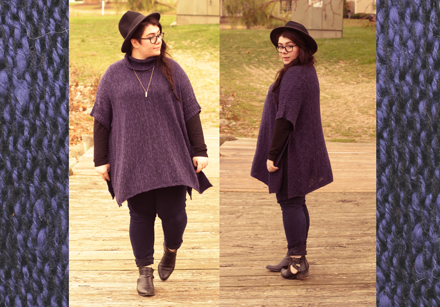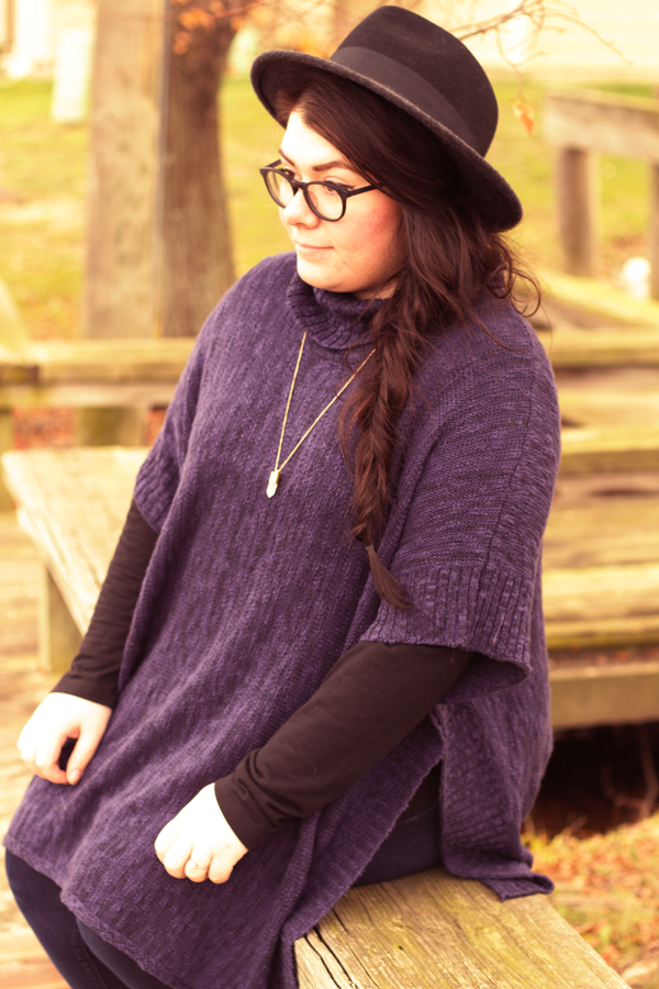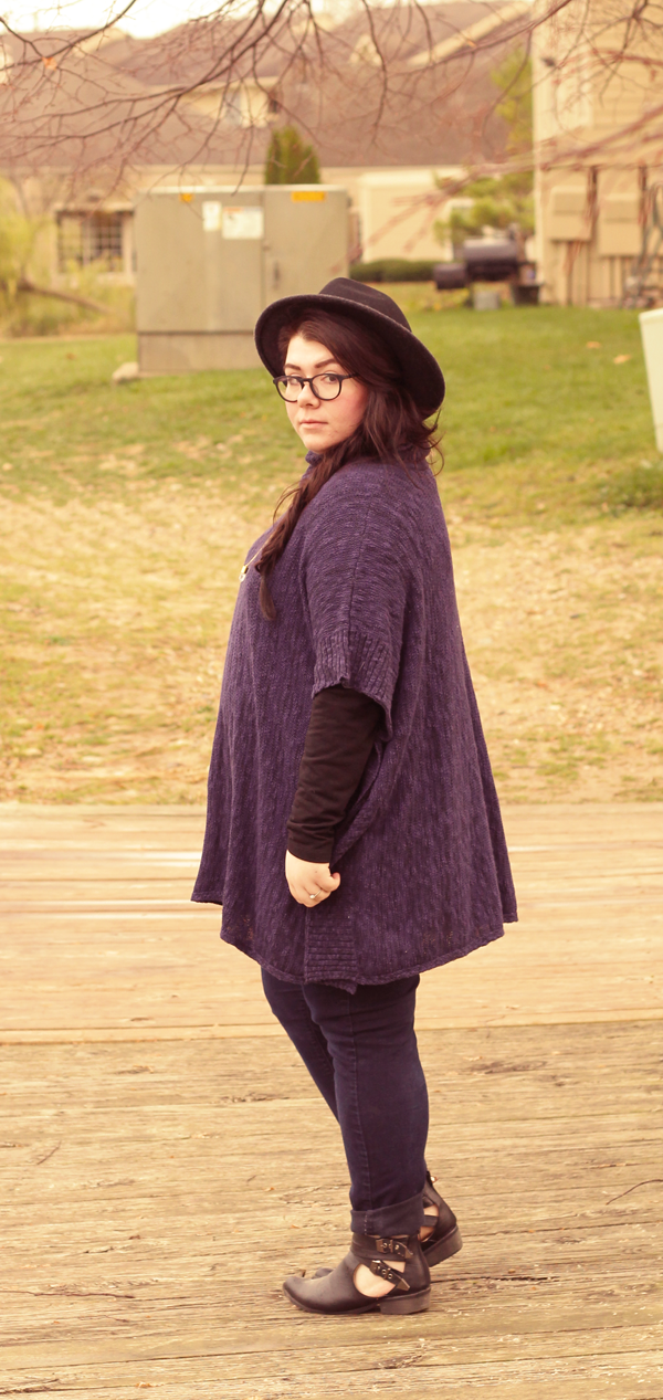 I'm not too big on trends: personal style is about having your own take on fashion and not delving deep into trends. But, damn, I'm really loving the poncho trend. Large, warm sweaters with the ability to layer over and under? Sign me up! I bought this one on clearance at Meijer, a midwest chain of retail stores and using some discounts, I got it for $10. Score.