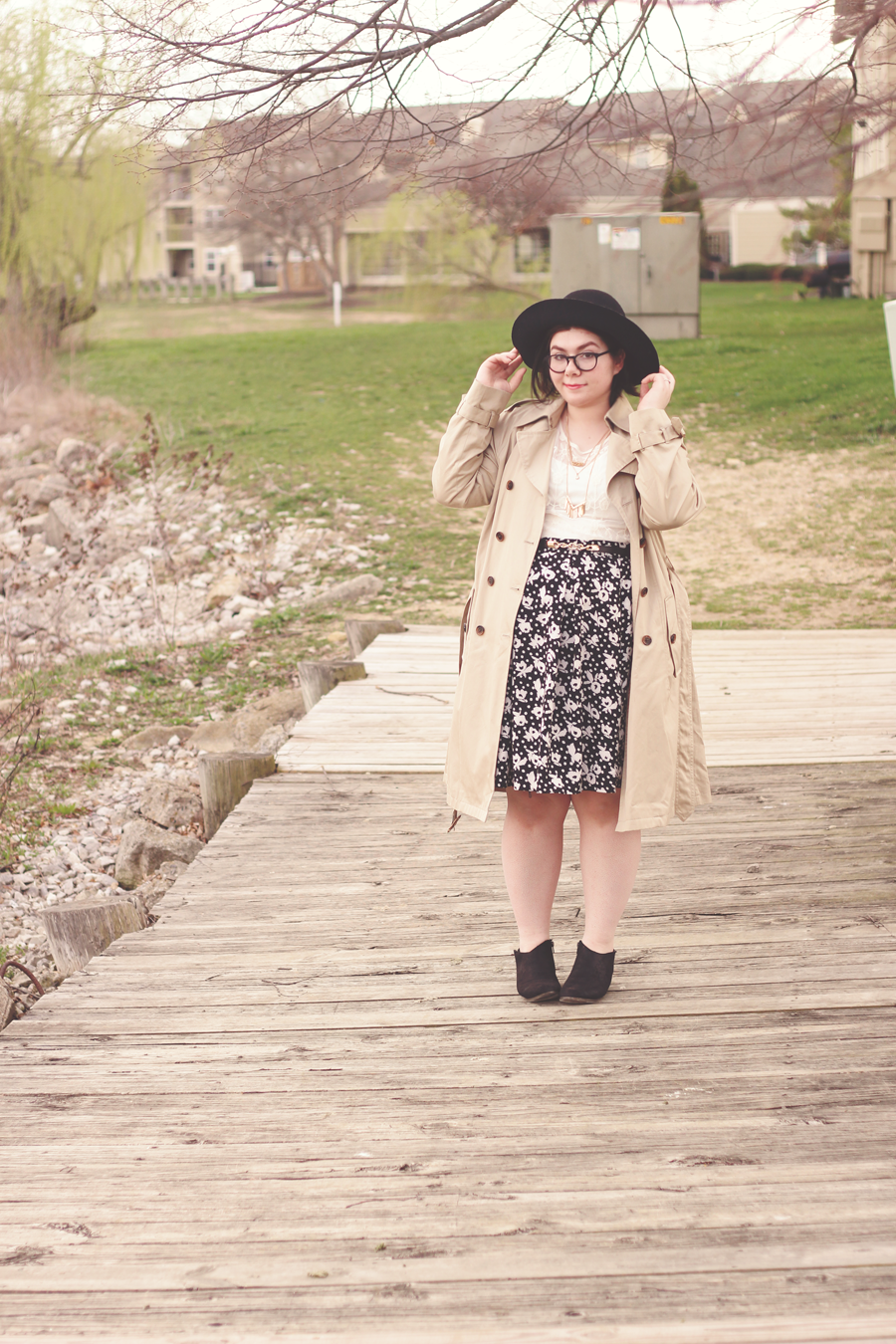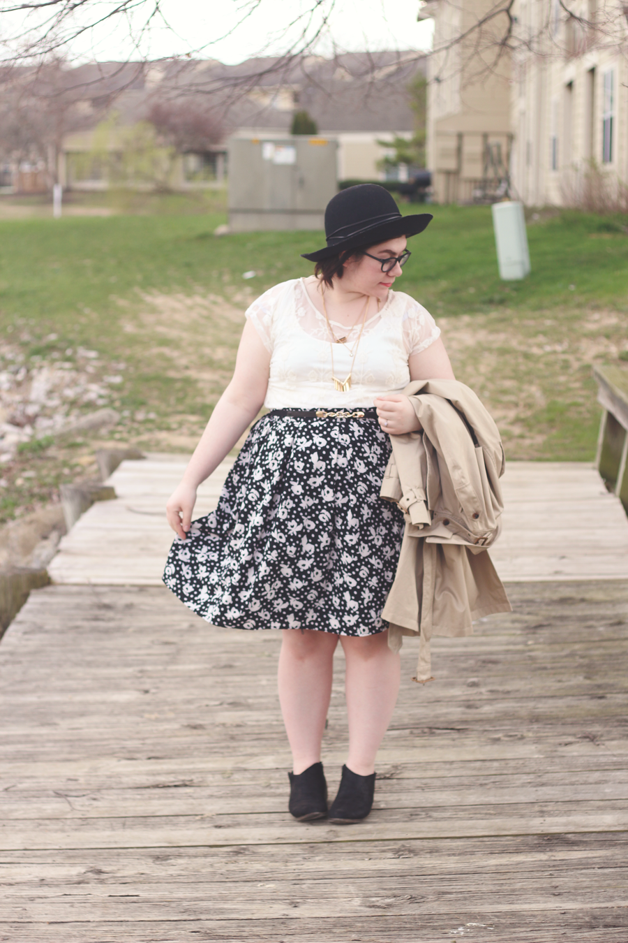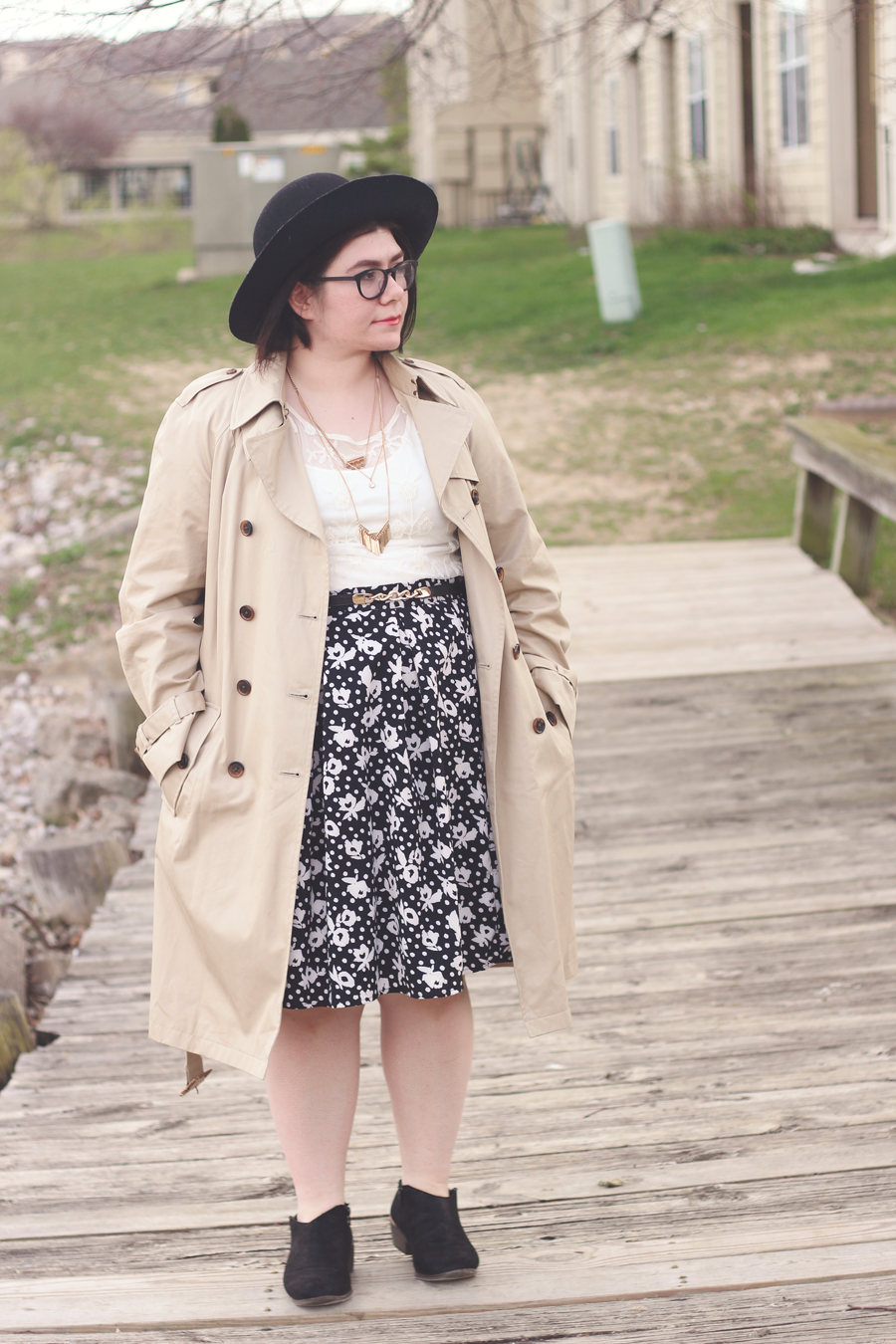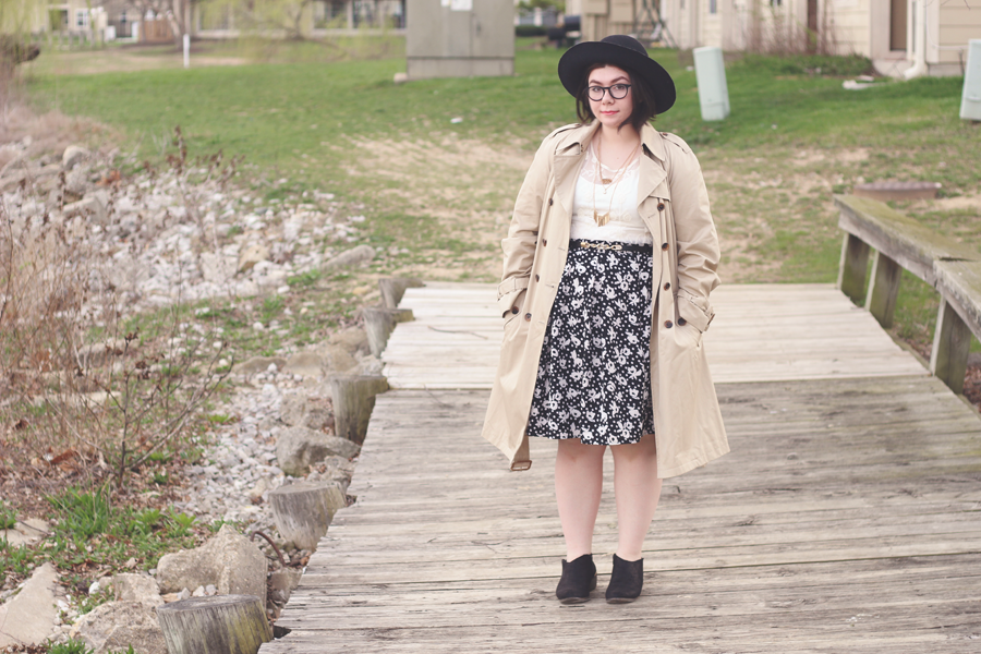 I went with a really limited palette on this dark and dreary Easter afternoon, and I kept the outfit fairly simple by using classic colors and silhouettes. The trench adds some dimension and keeps me dry, whilst the blouse and skirt allows Spring to showcase itself.