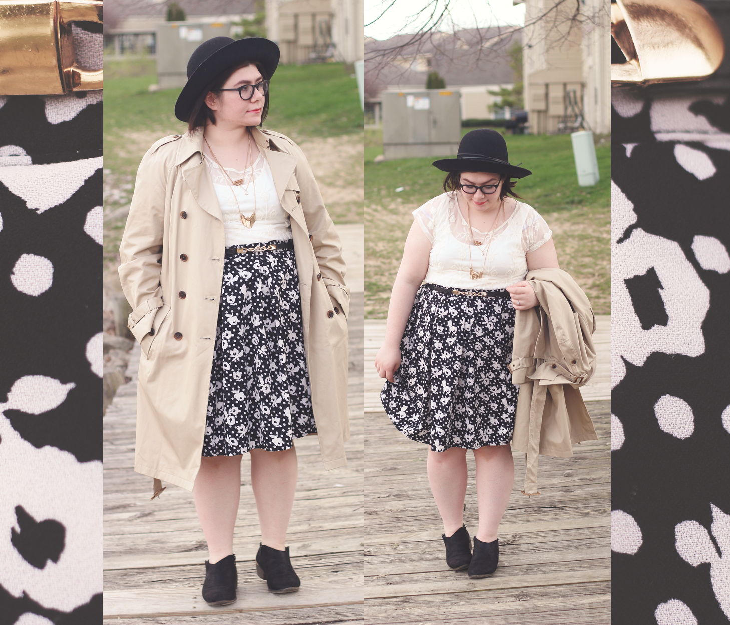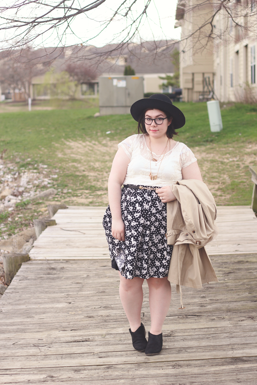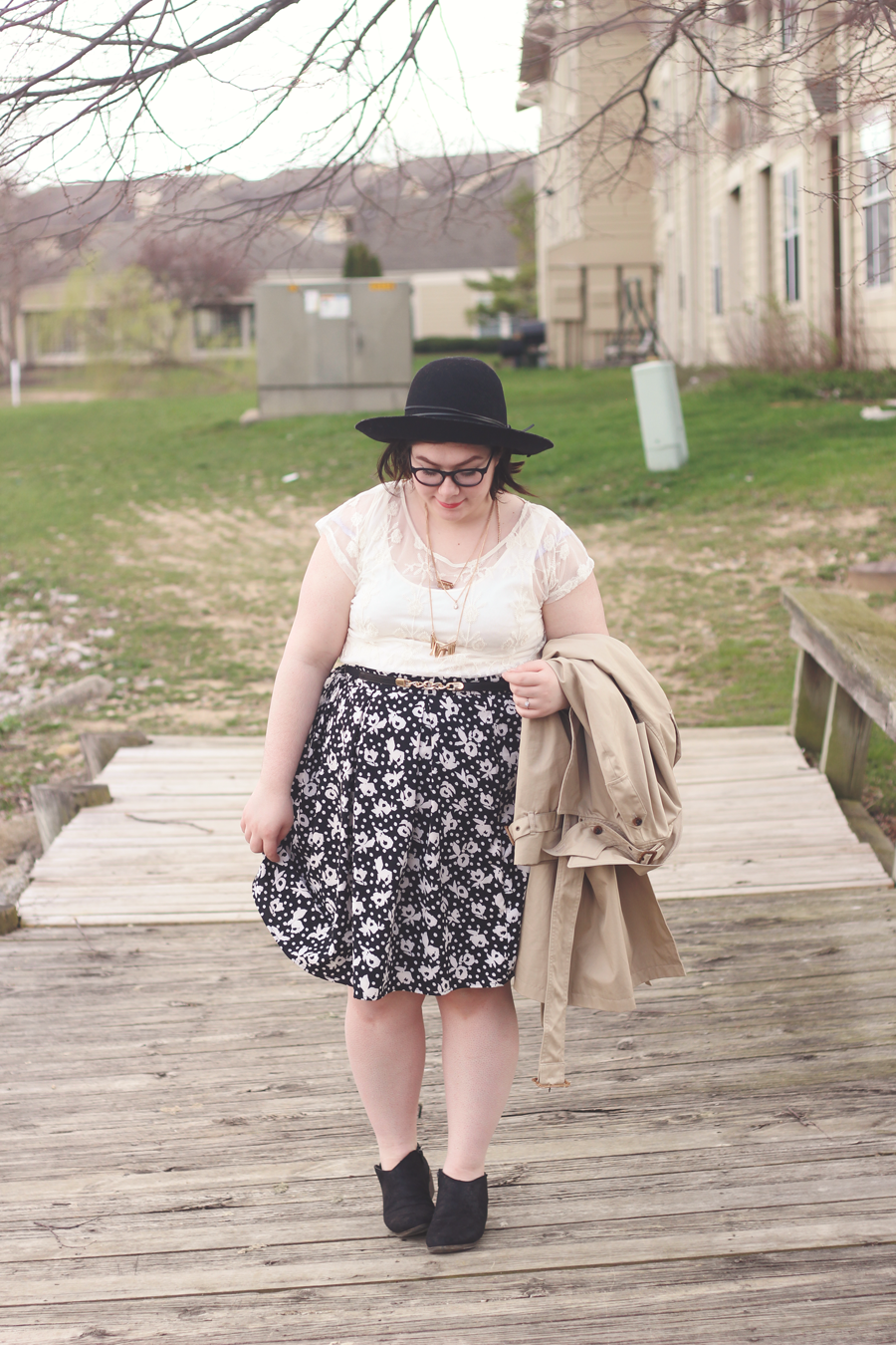 I went with a really limited palette on this dark and dreary Easter afternoon, and I kept the outfit fairly simple by using classic colors and silhouettes. The trench adds some dimension and keeps me dry, whilst the blouse and skirt allows Spring to showcase itself.