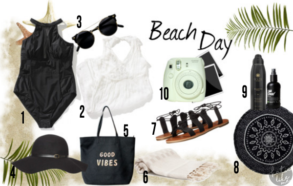 How can you have a beach day without a bathing suit? This one from Adore Me has mesh that showcases your glorious cleavage, and I think I'm in total love with it. Along with an embroidered cover up, it's an edgy yet feminine beach day look. I believe your beach outfit should be transitional; I mean, how can you not go out to gorge out on food with your friends after a day in the sun? You can't forget sunscreen to protect your skin from the sun, a beach mat and towel to keep your butt protected and you dry, and an instant camera to capture your beach day. All that's left is a tote to shove it all into and a pair of rad sunnies to keep that sun at bay.