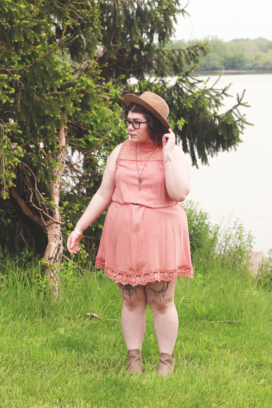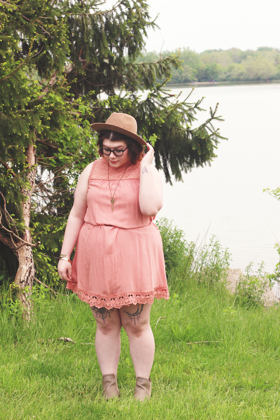 I paired this dress with some light brown accessories, like the hat and booties. I added gold accessories from a variety of places, and called it an outfit. This outfit was perfect for a Mother's Day brunch and shopping date.