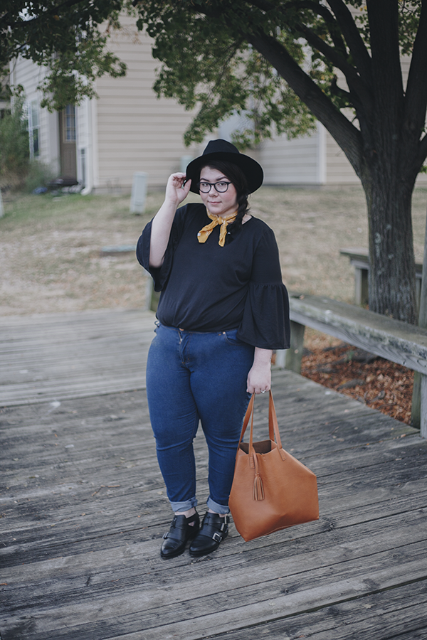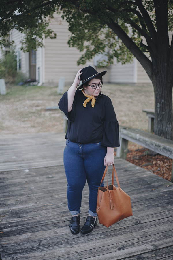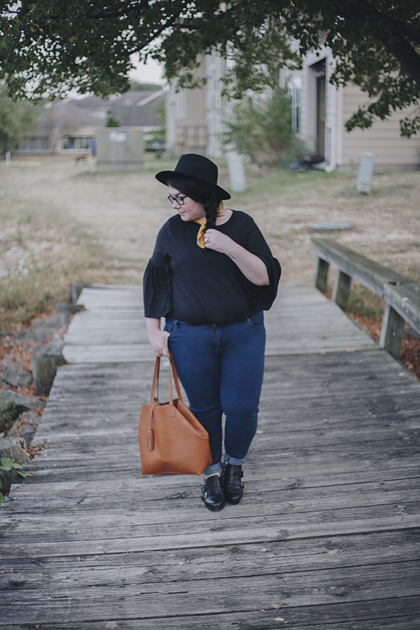 I found this bell sleeved beauty on the rack in the thrift store and I grabbed it immediately. Black, bell sleeved, and under $10? I was sold. The statement sleeve enhances the otherwise basic or causal outfit, but I can already imagine it with a skirt. Definitely a great late summer/early fall piece.