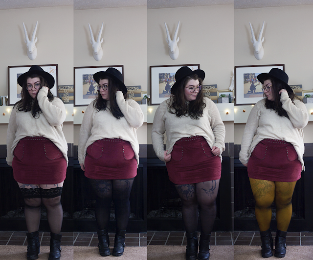 It's a bit too cold for just fishnets, but fishnets on top of a colorful tight is such a cool and edgy look! I added these fishnets over a mustard yellow tight for some visual interest and added color and I really love the look. These trendy fishnets are perfection.