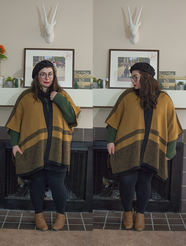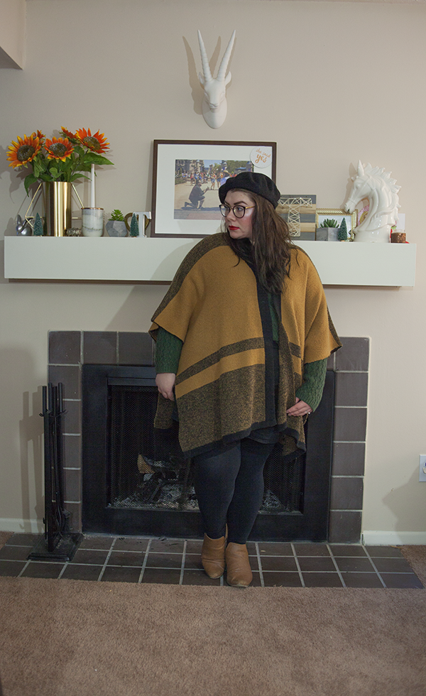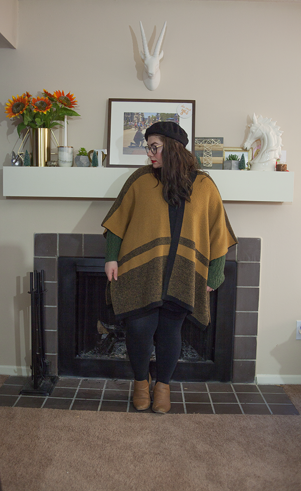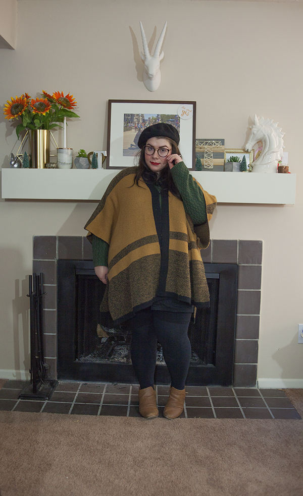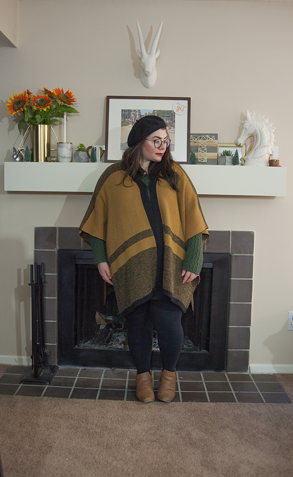 I have a real love for capes, shawls and ponchos. I have had this Forever 21 poncho for over a year and I don't wear it as often as I like to. It has a removable faux fur collar and it's heavy and thick, so it is a transitional piece. Today was the first day it was above freezing for over 2 weeks, and this kept me toasty. Thrown on top of this forest green sweater from thredUp that I've featured before, half tucked into an old button down Target skirt, it's the perfect Sunday errand outfit.