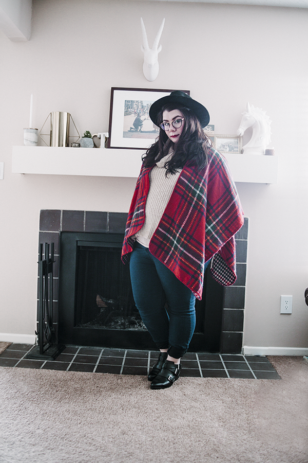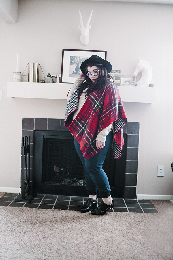 I wanted to keep it casual for a day of grocery shopping and lunch. It's not too cold outside, so this sweater and shawl/poncho made for the perfect combination for warmth. With some jeans (I know, a shocker!) and some booties, it was a great outfit for errands.