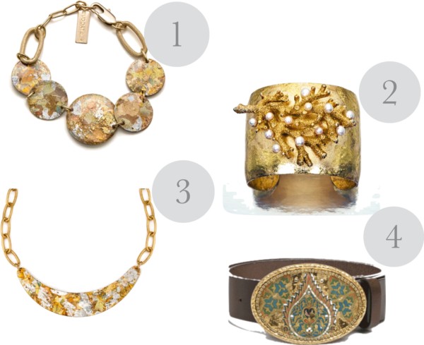 1)Many Moons Link Bracelet 2)Katherine Cuff 3)Confetti Boomer Pendant 4)Luxor Belt