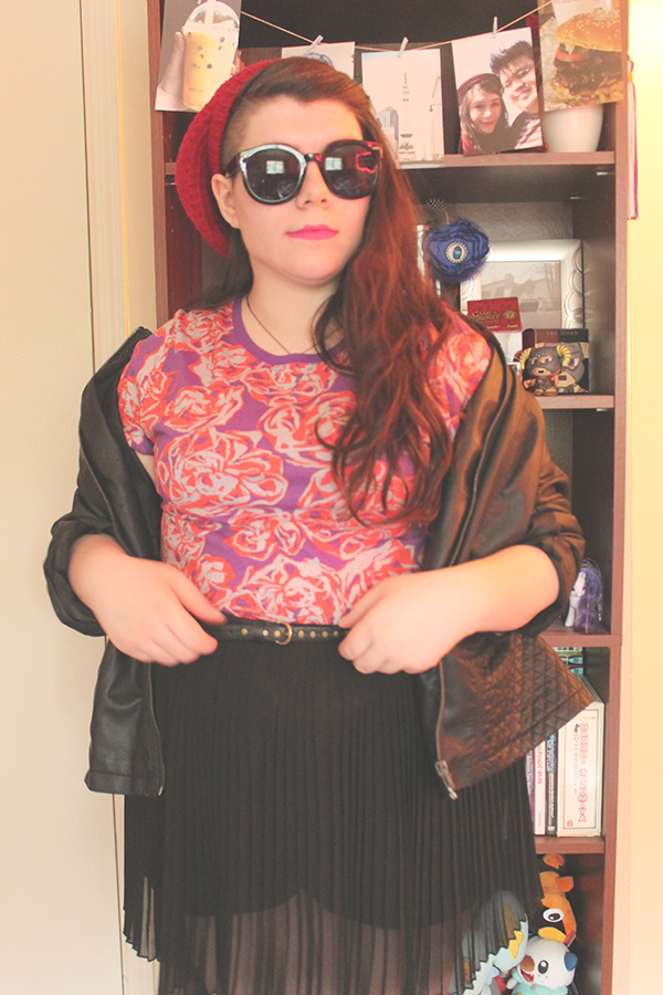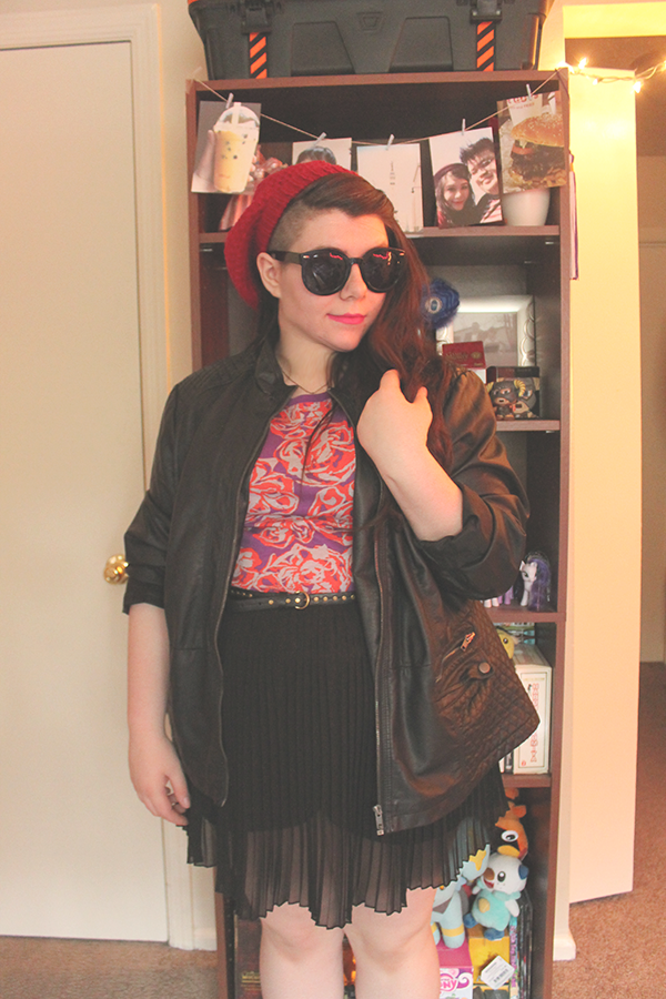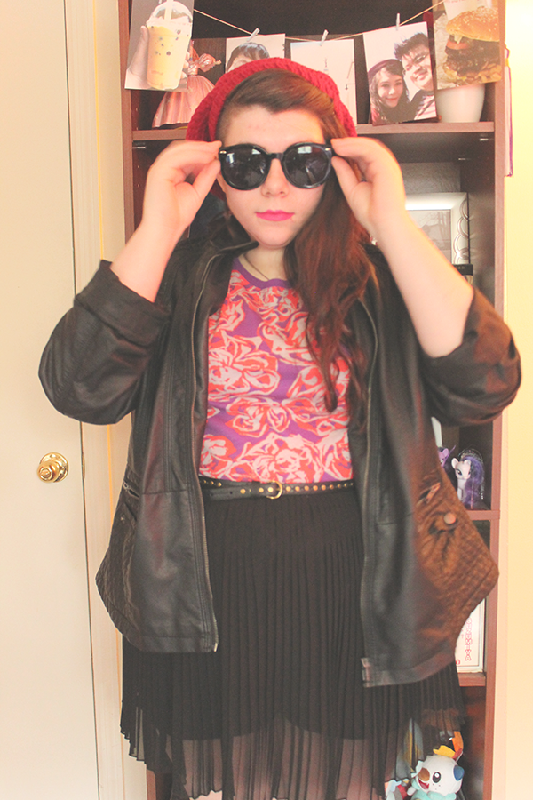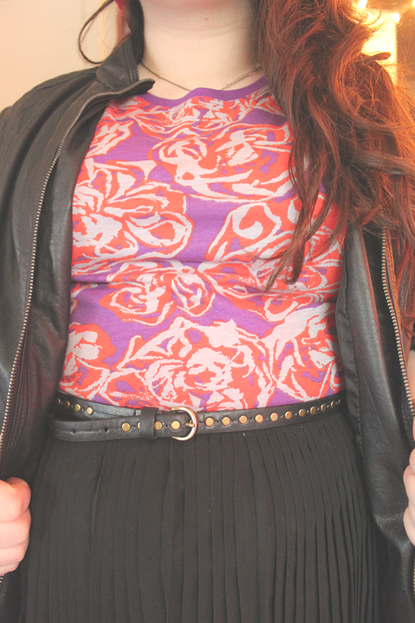 Faux Leather Jacket--Thrift//Rose Tee--Secondhand