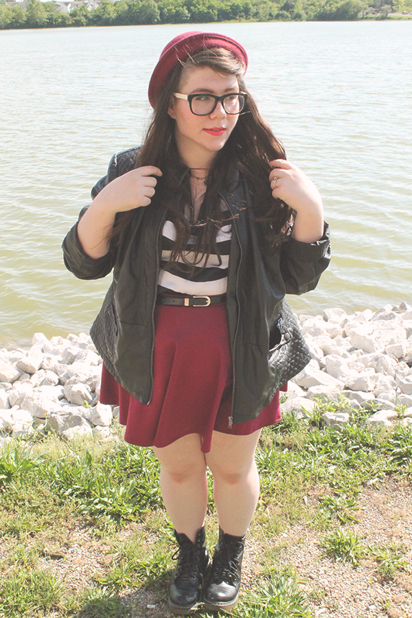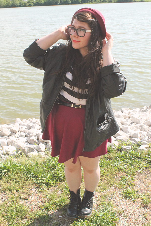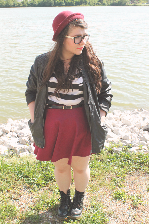 Faux Leather Jacket--Thrift//Striped Top--Thirft//