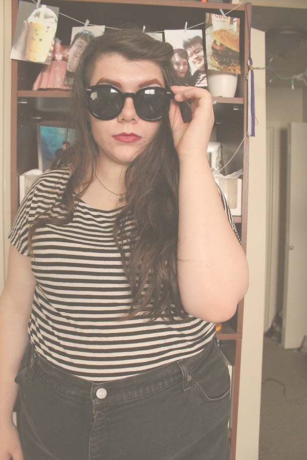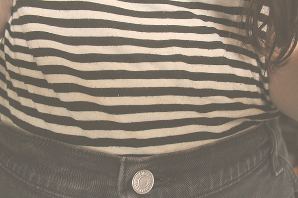 I paired these shorts with a striped tee because I'm obsessed with stripes as of late, and some studded booties. Black matches with black, right?