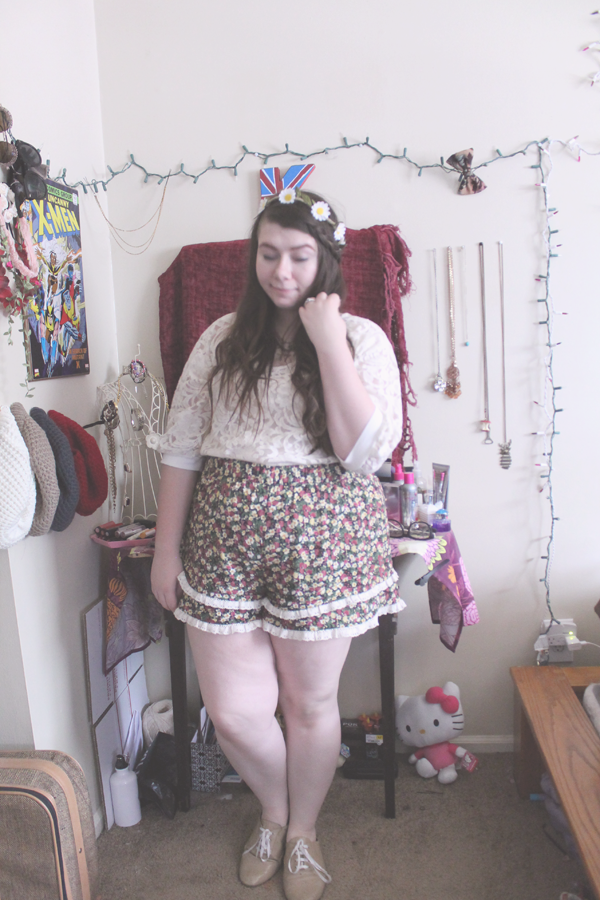Flower Crown--Target//Lace Top--Thrift//Shorts--Forever 21//Oxfords--Thrift