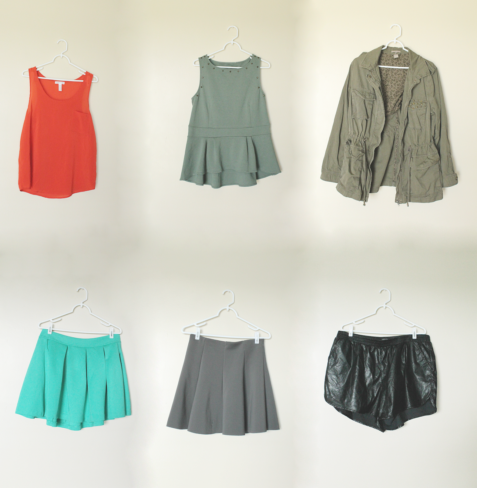 1)Burnt Orange Pocket Tank//2)Studded Olive Peplum Blouse//3)Heavy Olive Parka