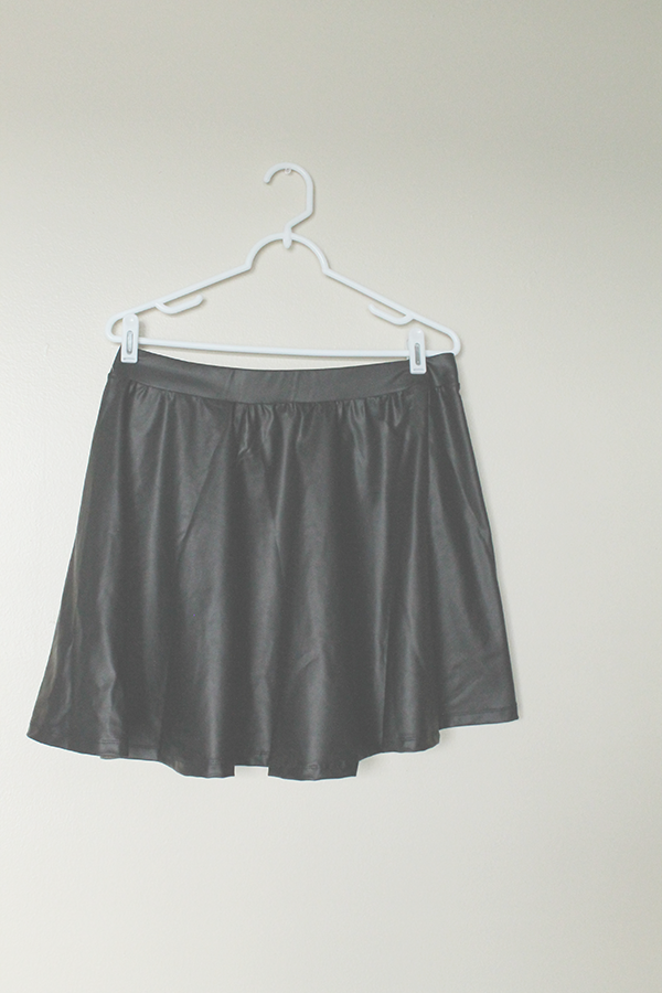 If you remember, or if you've been reading for a while, I had a faux leather skirt that I loved to death. Unfortunately, the zipper snagged and completely ripped the fabric, which was a heartbreaking moment. It took me close to a year to replace it, but I finally did, with this beaut. Just a plain, simple faux leather skater skirt from Forever 21. And, for under $10? I can dig it.