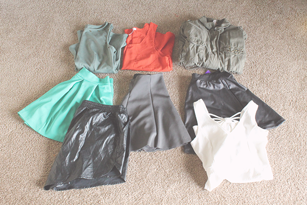 4)Teal Skater Skirt//5) Preppy Pleated Skirt//6)Faux Leather Shorts