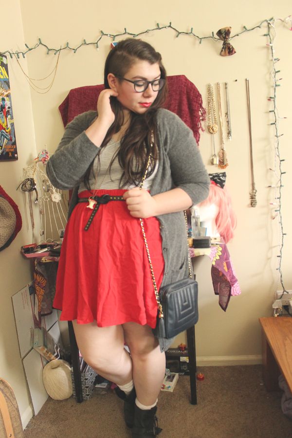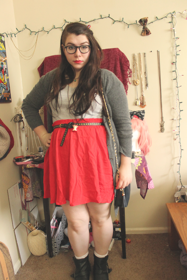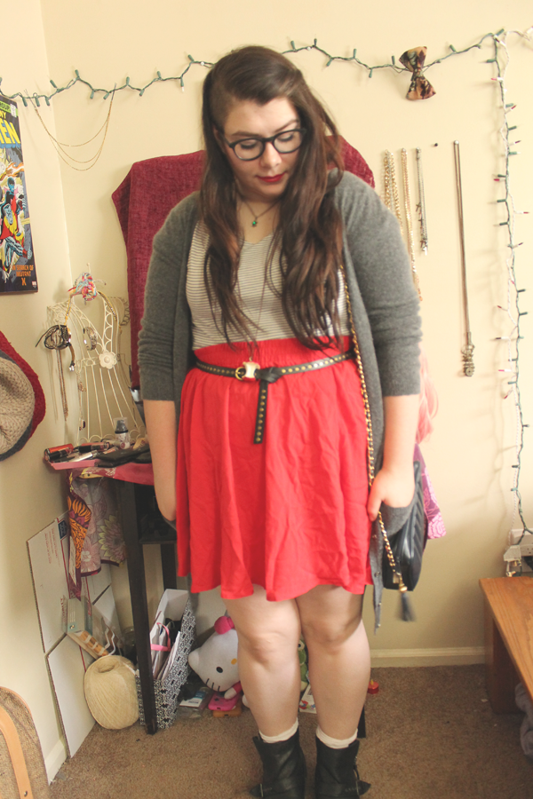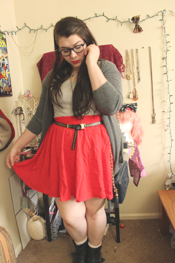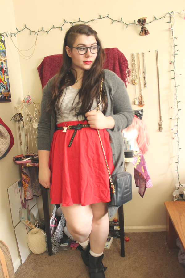 Cardigan--Vinted//Top--Thrift//Skirt--Thrift//Boots--Target