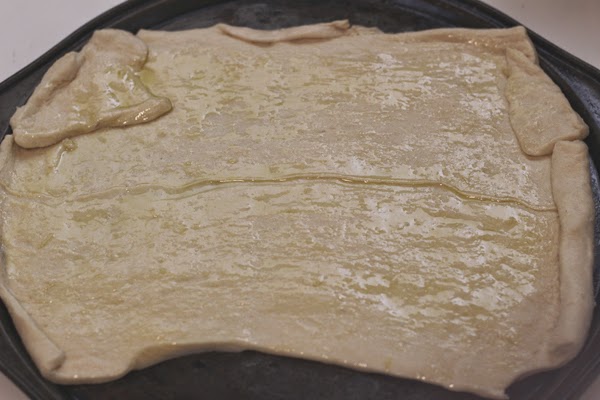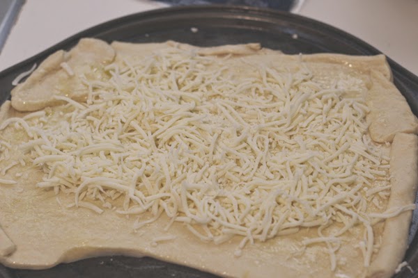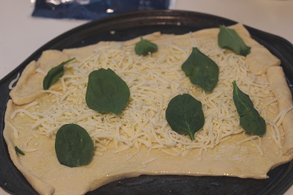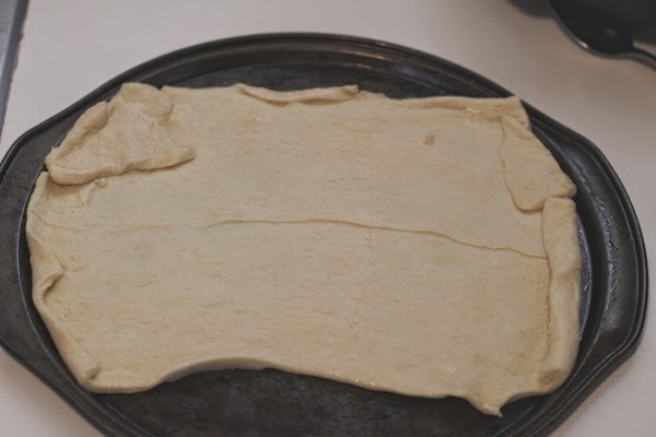 Roll out your dough. I used seamless crescent dough (which did not fit too well on my pizza pan).