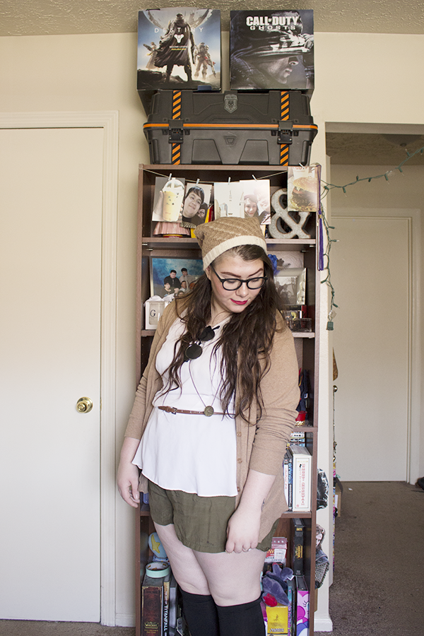 Beanie--Thrift//Blouse--Target//Shorts--Thrift//Socks--Steve Madden//Boots--Thrift