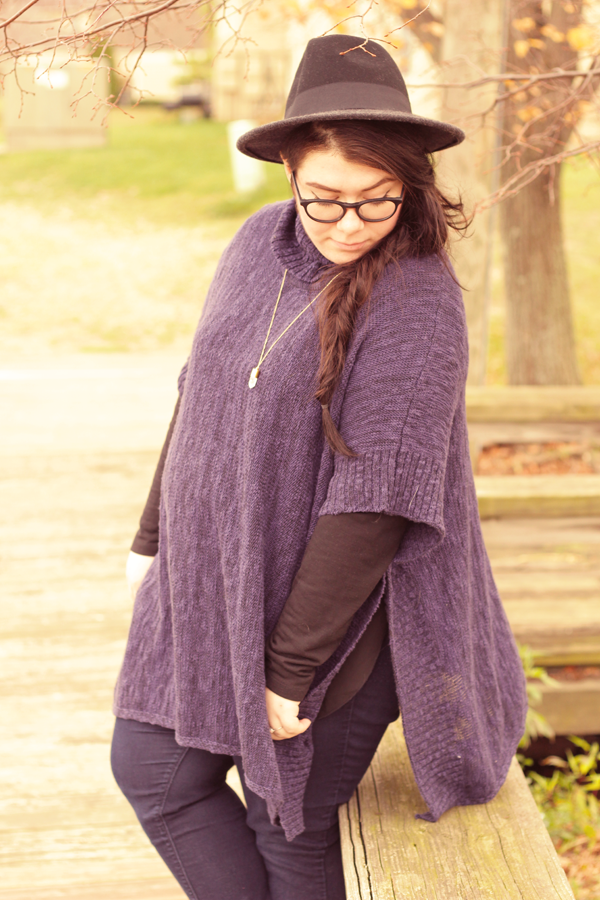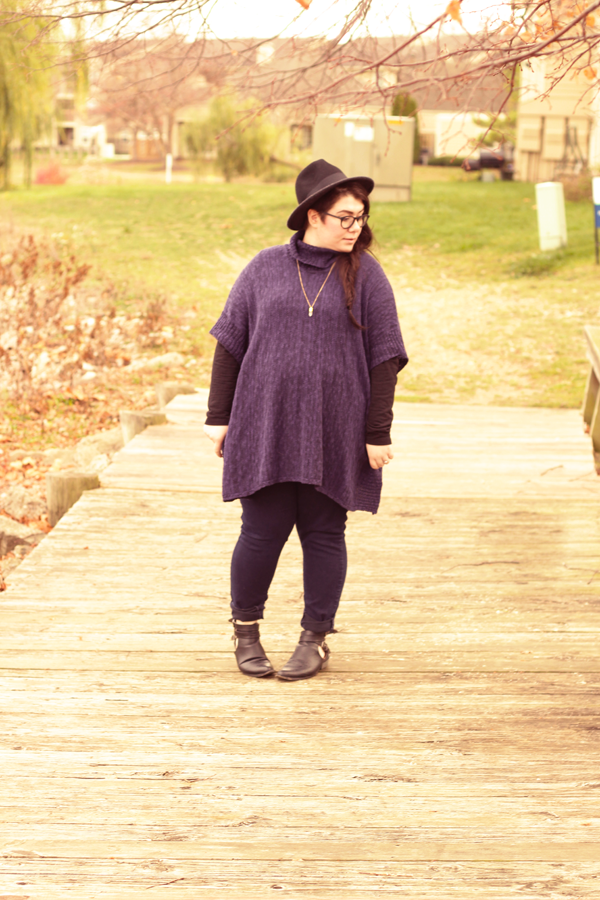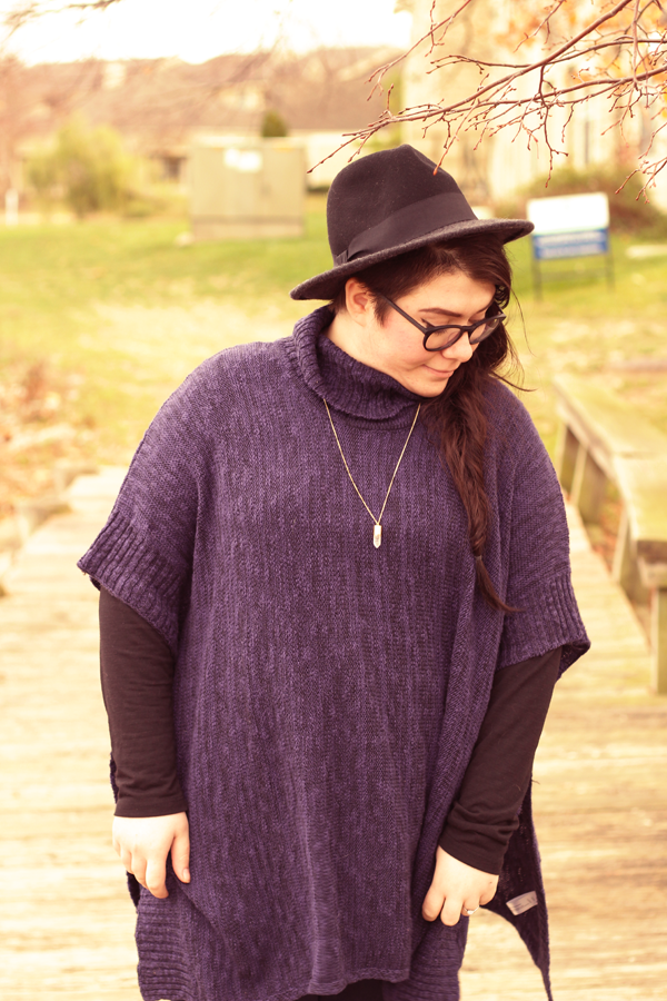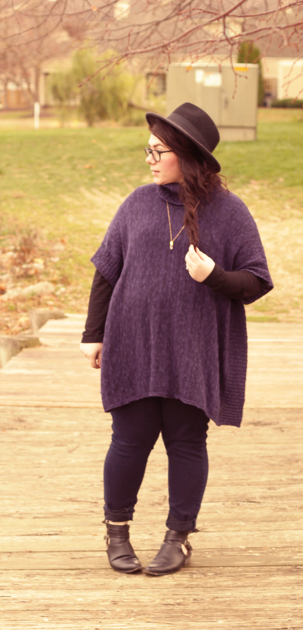 I'm not too big on trends: personal style is about having your own take on fashion and not delving deep into trends. But, damn, I'm really loving the poncho trend. Large, warm sweaters with the ability to layer over and under? Sign me up! I bought this one on clearance at Meijer, a midwest chain of retail stores and using some discounts, I got it for $10. Score.