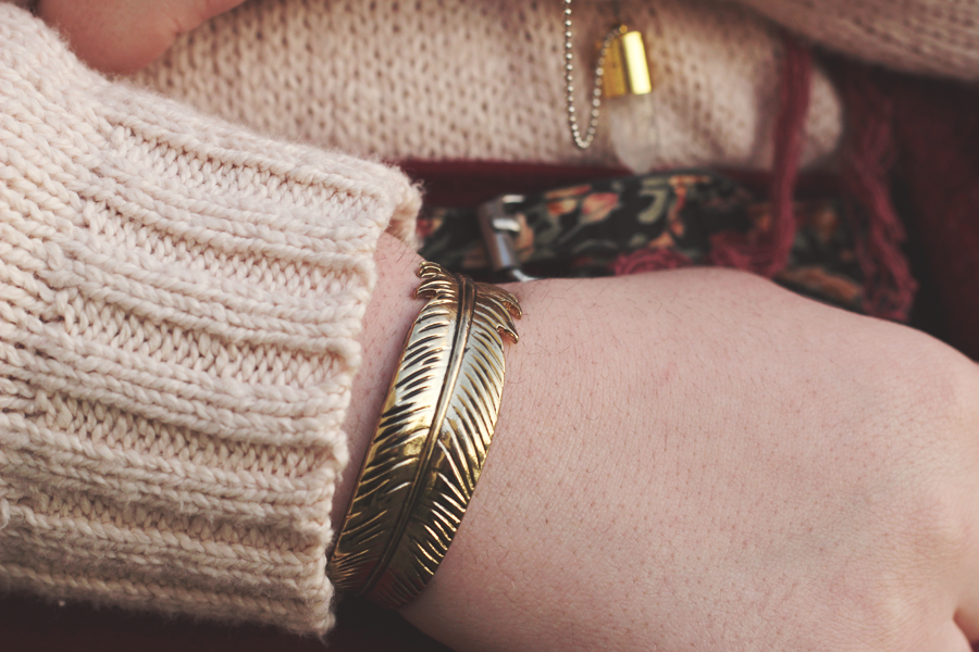 I love the earthiness of the brassy metal of this leaf bracelet and I love that it has a forest witch vibe. However, even on my decently small wrists, it's a little too small. Definitely a little sad that it doesn't look good on me, but it won't keep my from wearing it!