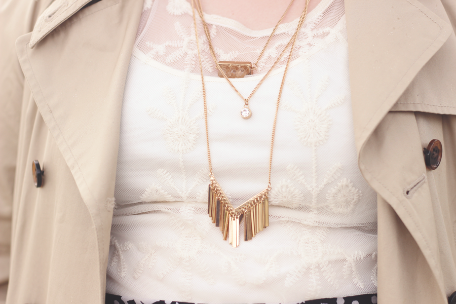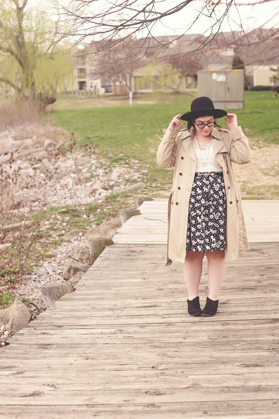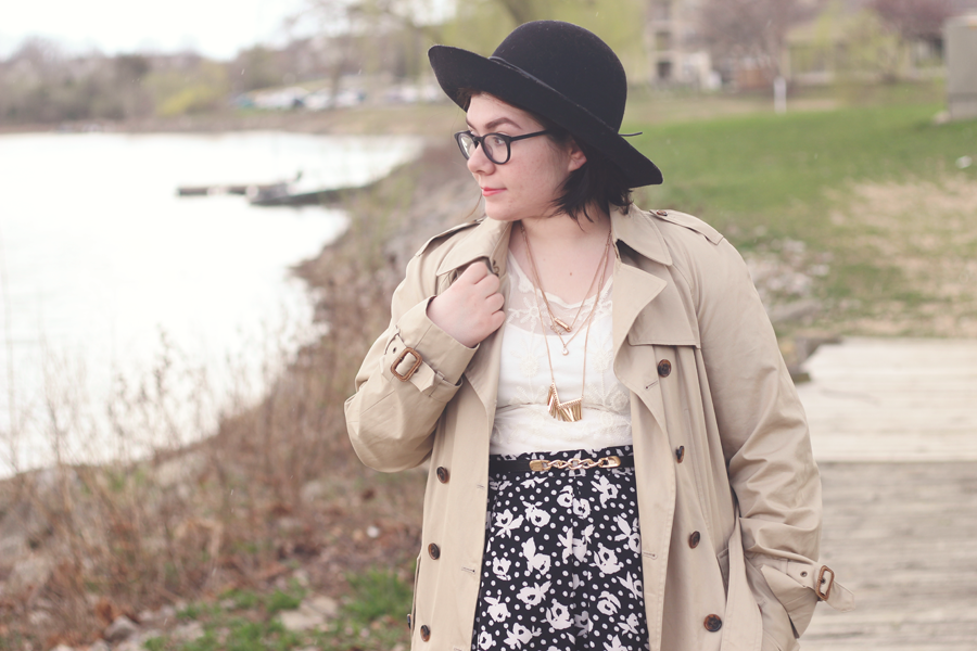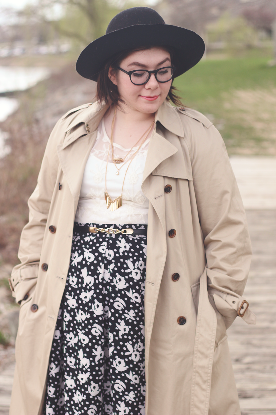 I went with a really limited palette on this dark and dreary Easter afternoon, and I kept the outfit fairly simple by using classic colors and silhouettes. The trench adds some dimension and keeps me dry, whilst the blouse and skirt allows Spring to showcase itself.