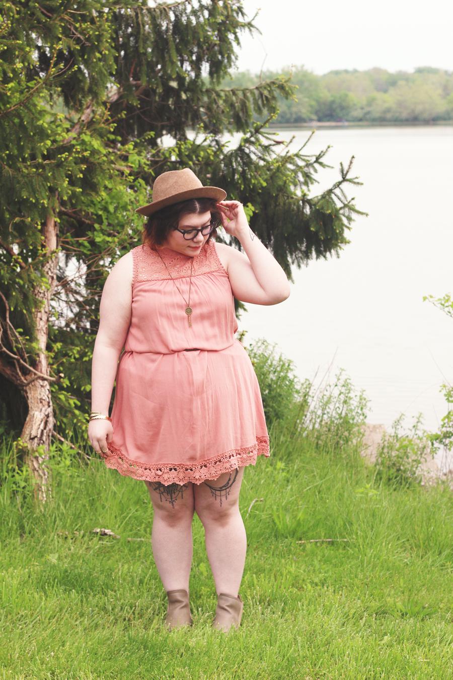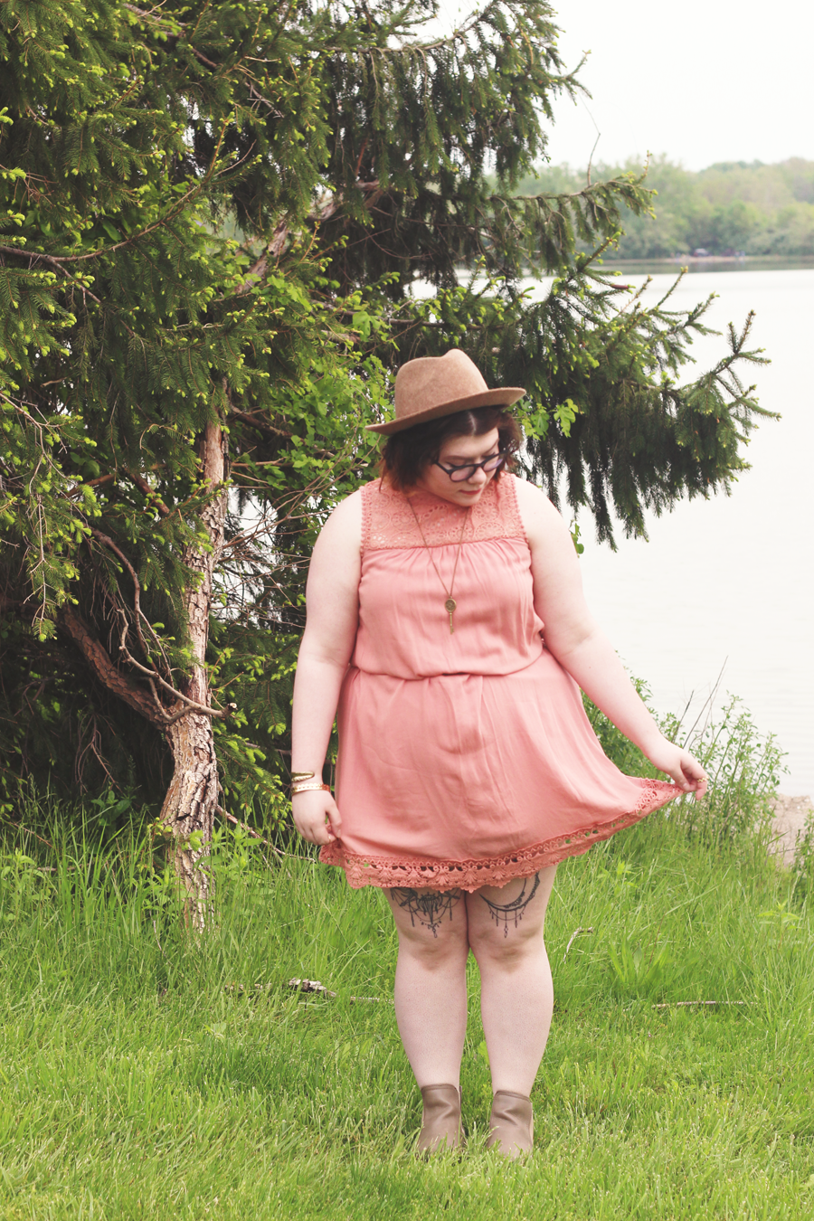 I paired this dress with some light brown accessories, like the hat and booties. I added gold accessories from a variety of places, and called it an outfit. This outfit was perfect for a Mother's Day brunch and shopping date.