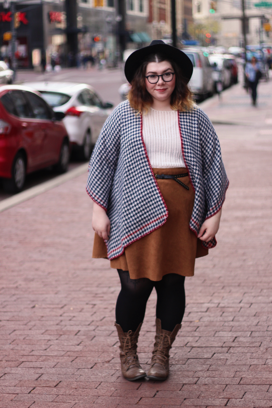 It's cold and I am loving it. I am loving everyone in their sweaters, drinking hot drinks and holding hands. It's the cutest. I'm also loving that fall is finally in full swing and I can bust out my tights. I mean, this is just a black pair--and I own a dozen other pairs in different colors--but it's still great to be able to wear skirts and dresses when the weather says you shouldn't.