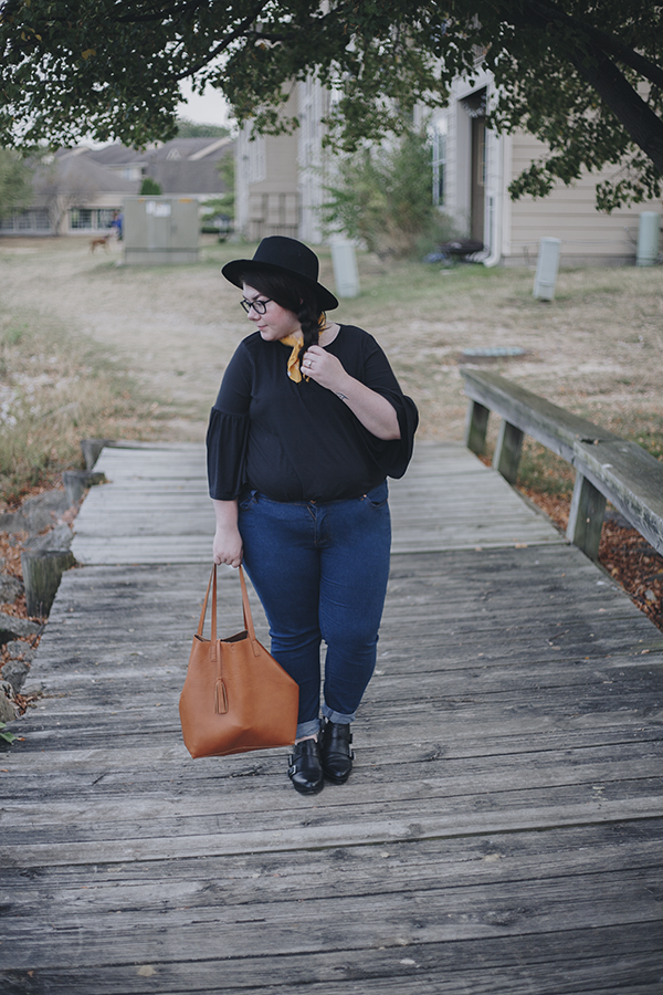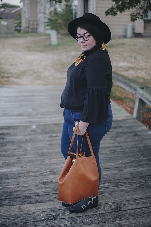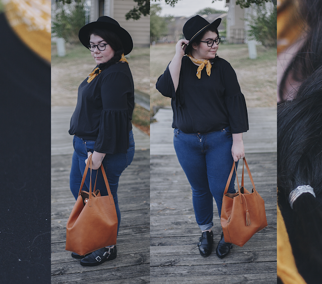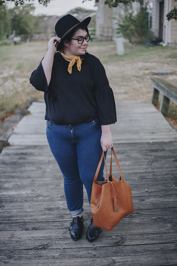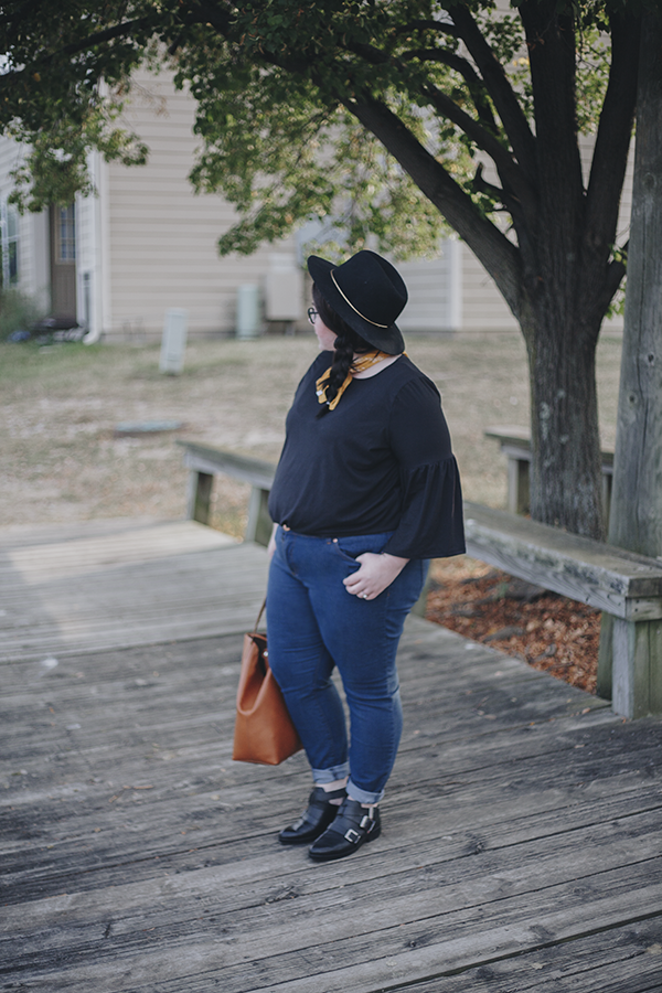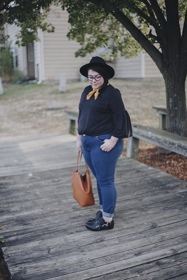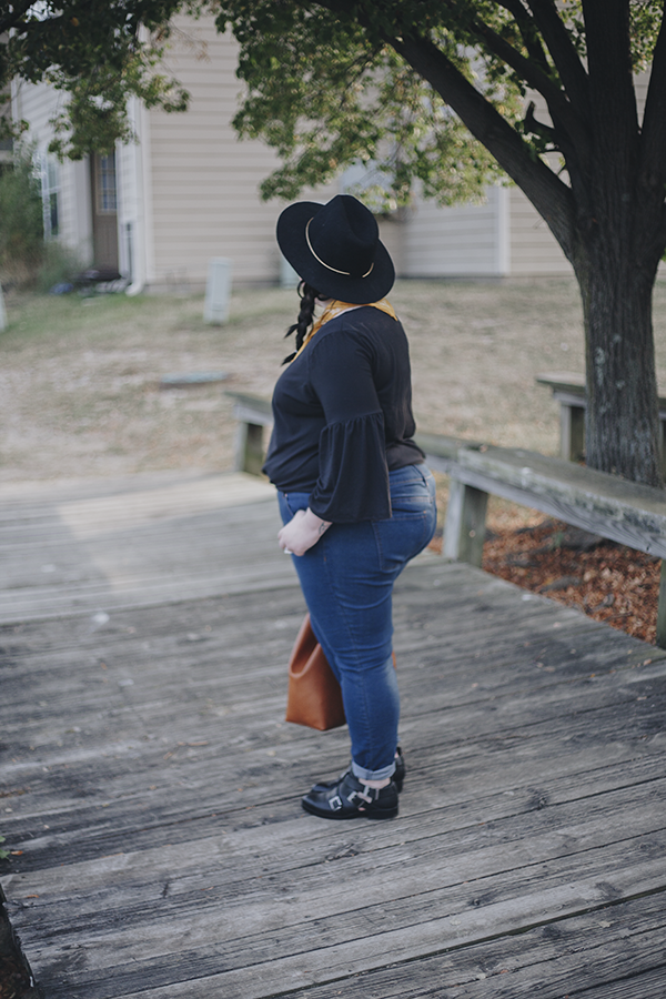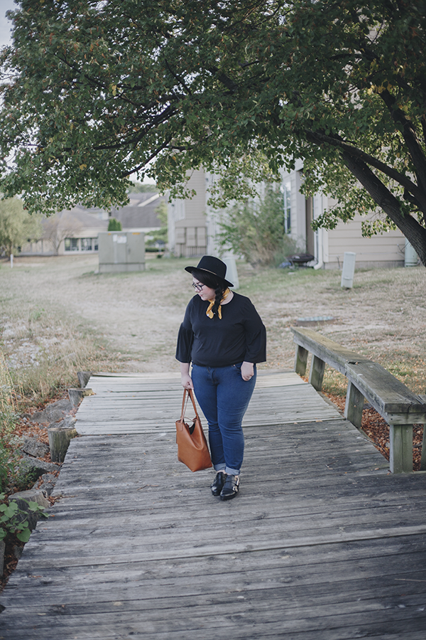 I found this bell sleeved beauty on the rack in the thrift store and I grabbed it immediately. Black, bell sleeved, and under $10? I was sold. The statement sleeve enhances the otherwise basic or causal outfit, but I can already imagine it with a skirt. Definitely a great late summer/early fall piece.