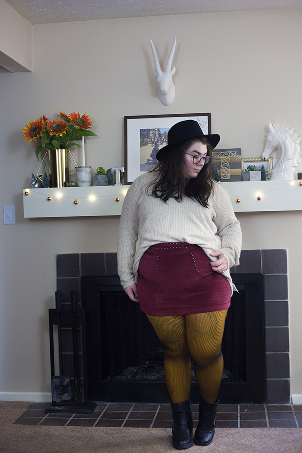It's a bit too cold for just fishnets, but fishnets on top of a colorful tight is such a cool and edgy look! I added these fishnets over a mustard yellow tight for some visual interest and added color and I really love the look. These trendy fishnets are perfection.