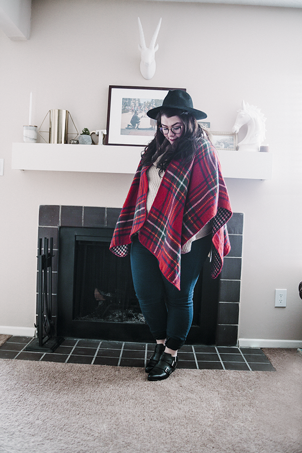 I wanted to keep it casual for a day of grocery shopping and lunch. It's not too cold outside, so this sweater and shawl/poncho made for the perfect combination for warmth. With some jeans (I know, a shocker!) and some booties, it was a great outfit for errands.