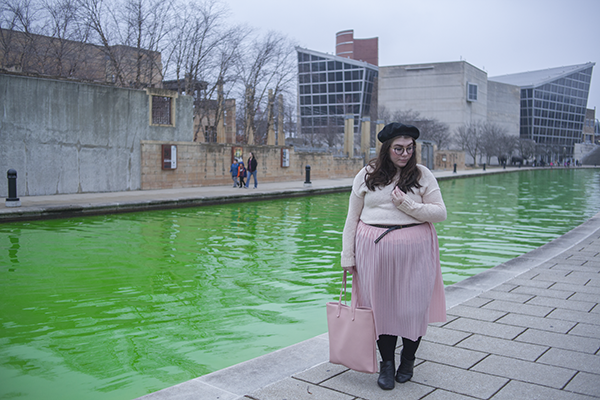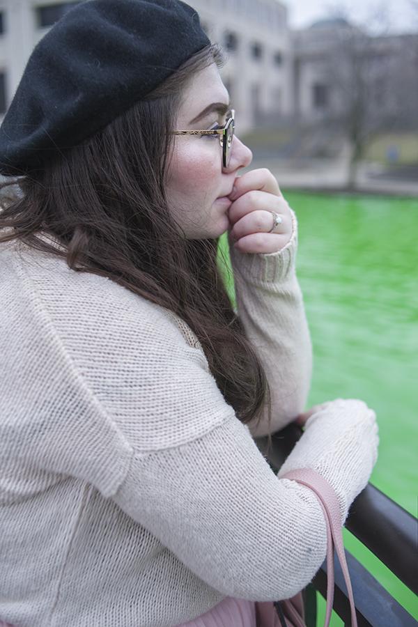 So, you might be noticing the green water. These were shot on St. Patrick's Day when the Canal was dyed green and it was unexpectedly cold down there. It made a chilly day into a freezing one and of course, we weren't wearing coats. There is a time in the winter where everyone just gives up on wearing outerwear because they no longer want to wear it and that's me at this point. Get a little warmer already!
