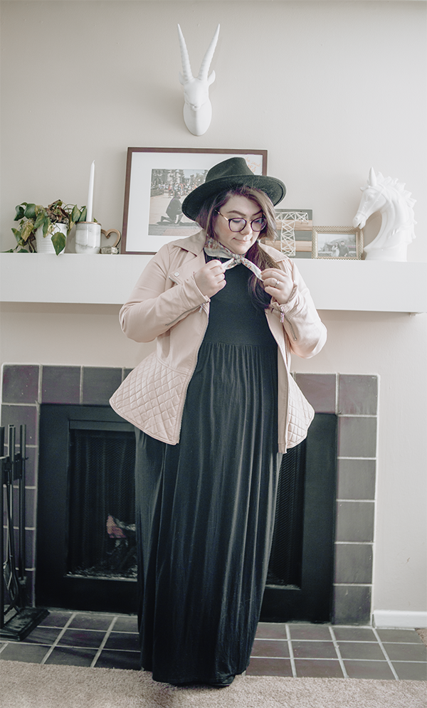Maxi dresses are comfortable and transitional, and are great for almost all seasons. I love layering them up in cold weather months and wearing them as is in the warm weather months and getting my moneys worth for them. This dress is actually from a local online boutique called The Girls in Grey and I got it for $15, which is a total steal. I love the length, the shape and it has pockets, a winner in my book!